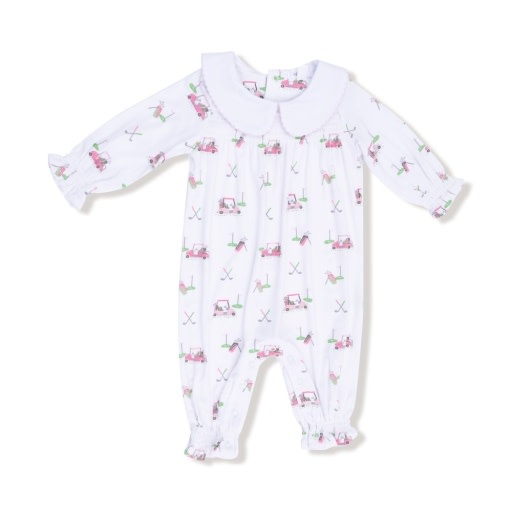 Baby Golf Carts - Pink - Smocked L/S Romper w/ Peter Pan Collar