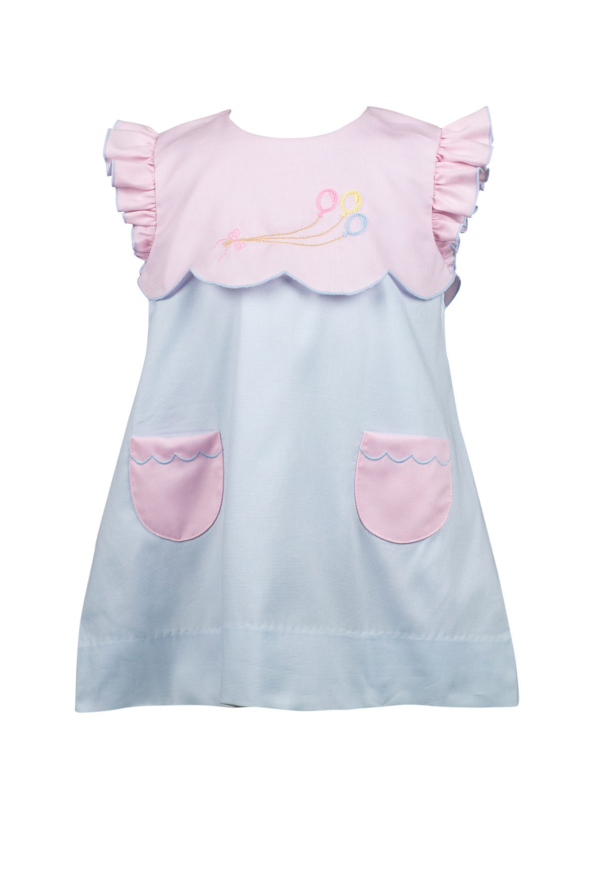 The pink and blue combination is stunning and each scallop is hand-cut by our seamstress. The look is delicate and lovely. The perfect style for any birthday occasion or any other happy day.