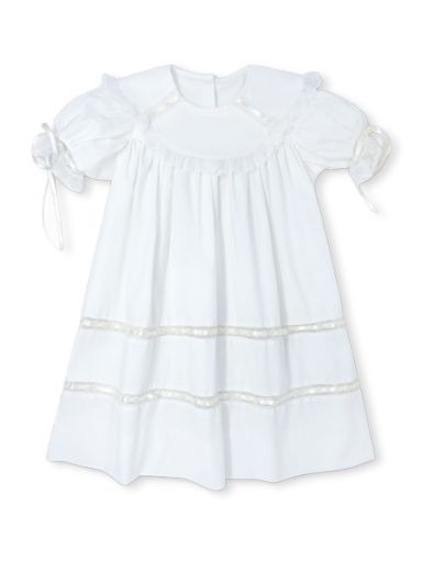BLESSINGS WHITE BATISTE WITH ECRU LACE AND RIBBON