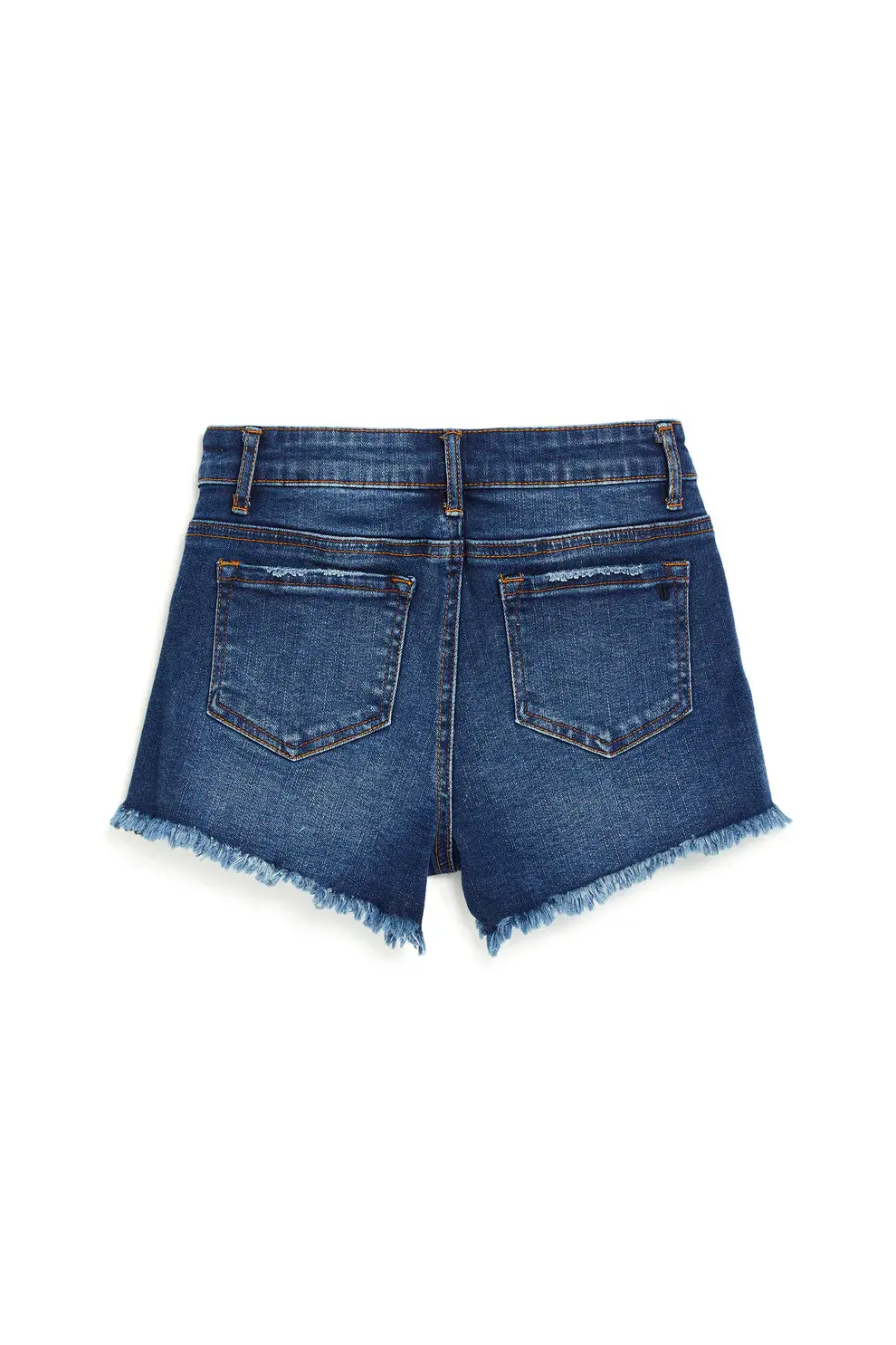 These indigo denim shorts feature a classic five-pocket design with frayed hems and distressed detailing. The silhouette is easy and casual, with a lived-in look that adds texture without feeling overworked.