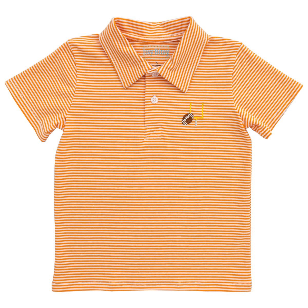 This striped polo is perfect for game day, it features an embroidered football and goal post on the right corner.