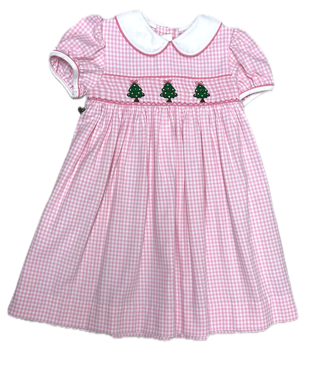 Pink Smocked Christmas Tree Dress