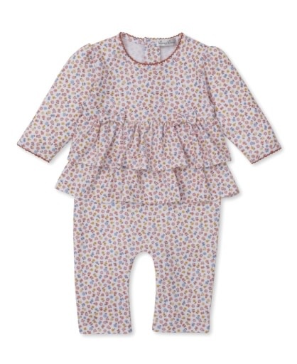 Our fun patchwork pumpkin floral print covers this cute playsuit that is perfect for an autumn day. Featuring two tiers at the wasit and little bows. Made from the softest Pima cotton for ultimate comfort for baby.