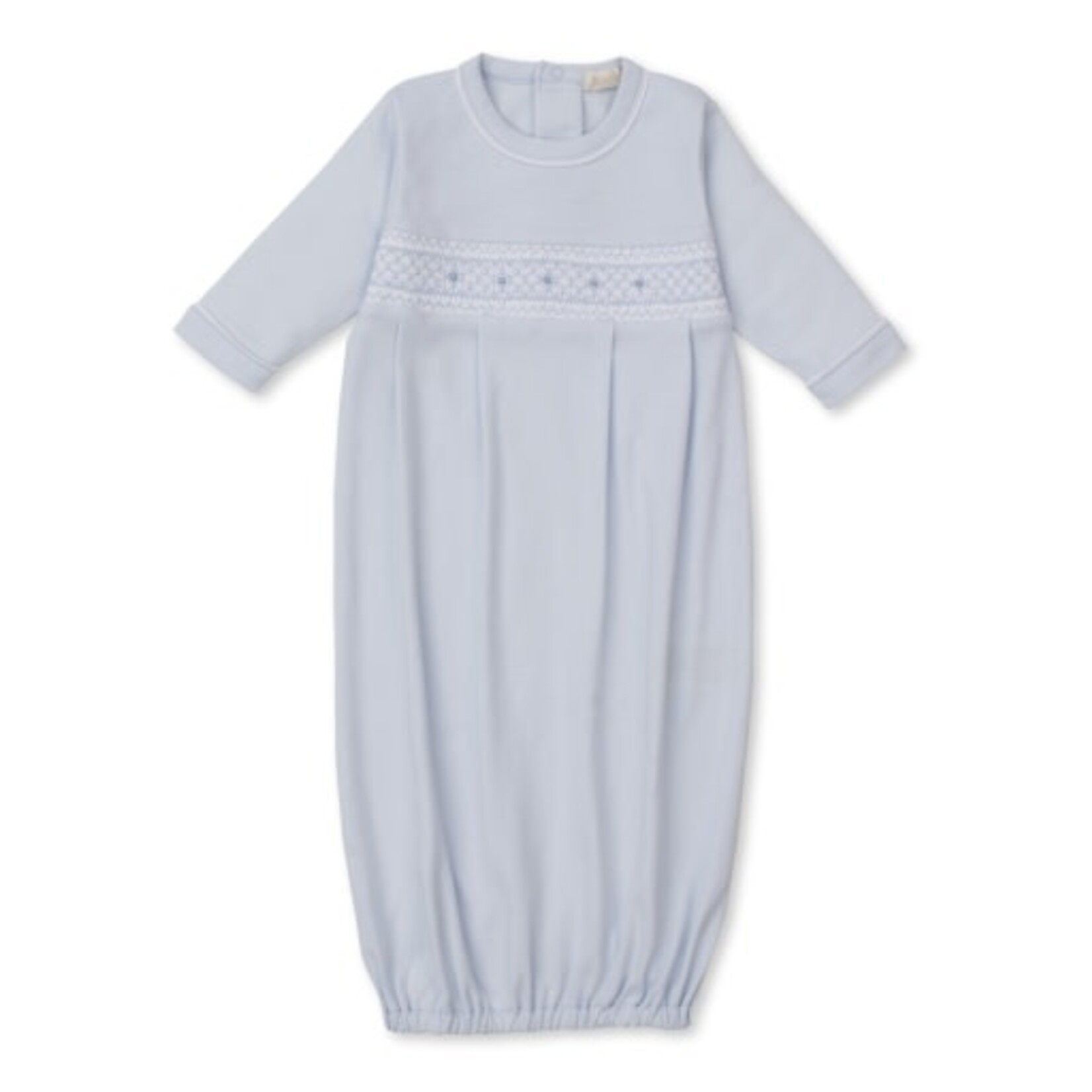 The softest, coziest sack gown is crafted from the finest Peruvian cotton for the softest feel for baby. Featuring delicate hand smocking and timeless design.